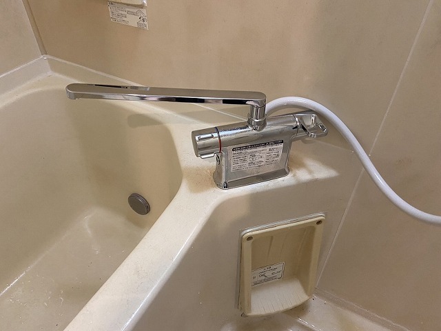 千葉市賃貸住宅の浴室に台付サーモ水栓(BF-WM646TSG)を取り付け After