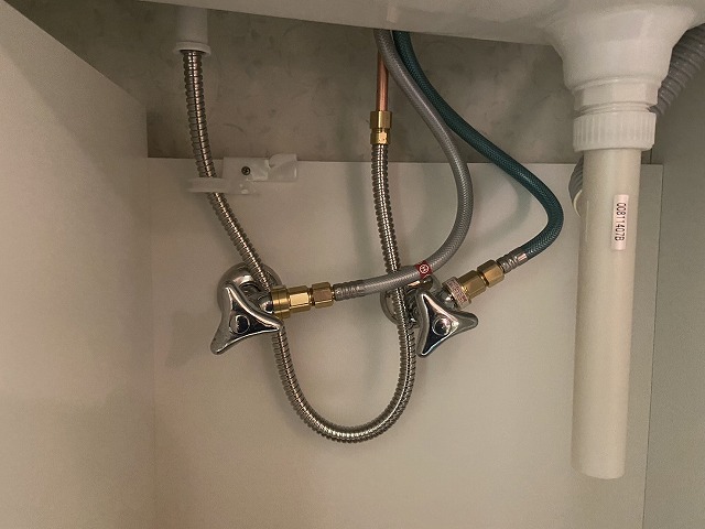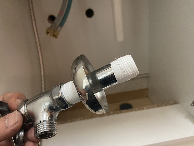 まずは止水栓を取り付け、水栓と接続していきます。